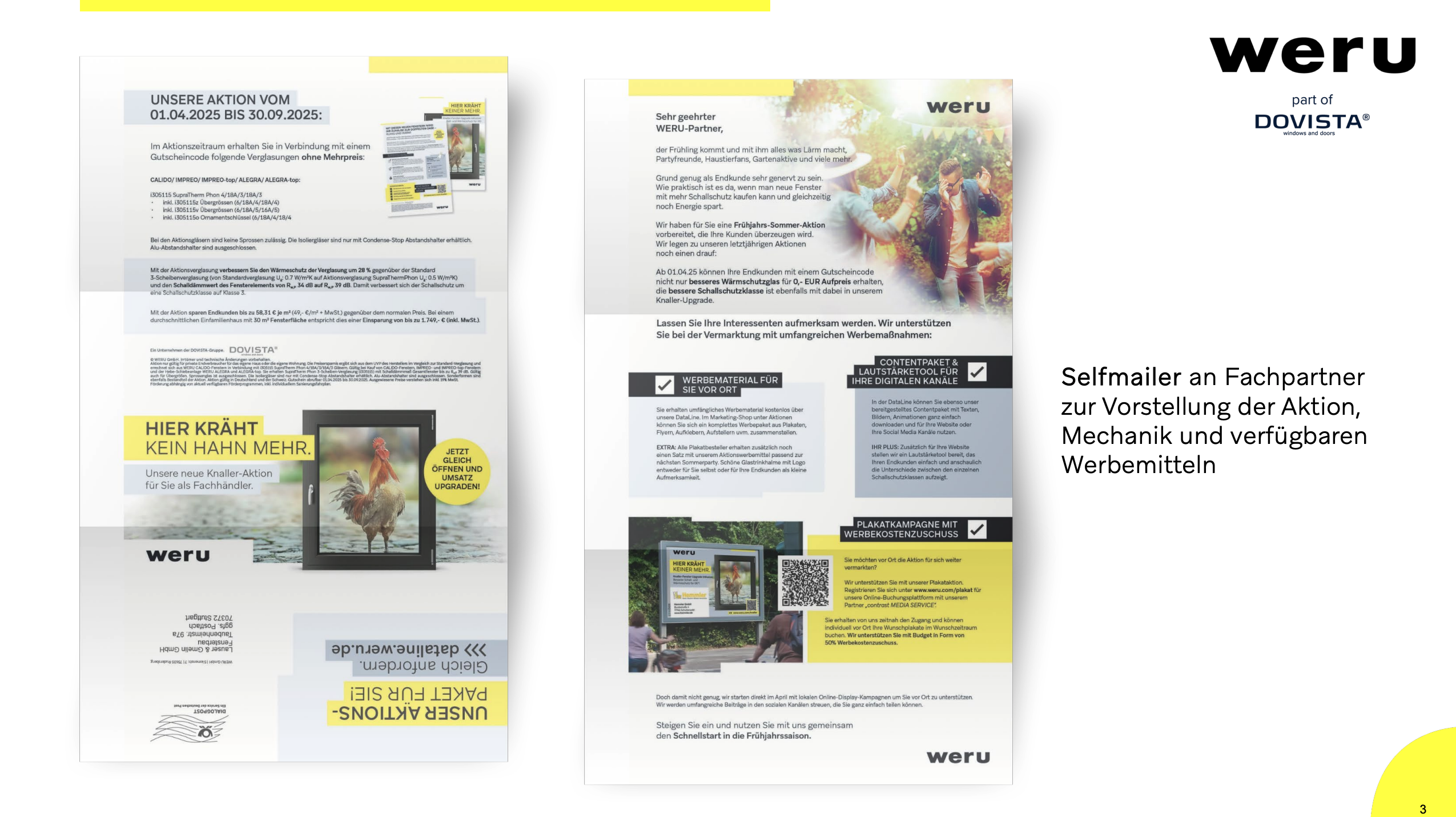 Die Kampagne ist konsequent als B2B2C-Maßnahme mit starkem Handelsfokus aufgebaut. Der Fachpartner ist nicht nur Distributionskanal, sondern integraler Bestandteil der Kampagne. Alle Werbemittel sind so gestaltet, dass sie Co-Branding ermöglichen und die Kompetenz des Fachbetriebs sichtbar machen. So wird aus einer nationalen Aktion eine lokal erlebbare Kampagne mit einheitlicher Leitidee und gleichzeitig maximaler Nähe zum jeweiligen Fachbetrieb.