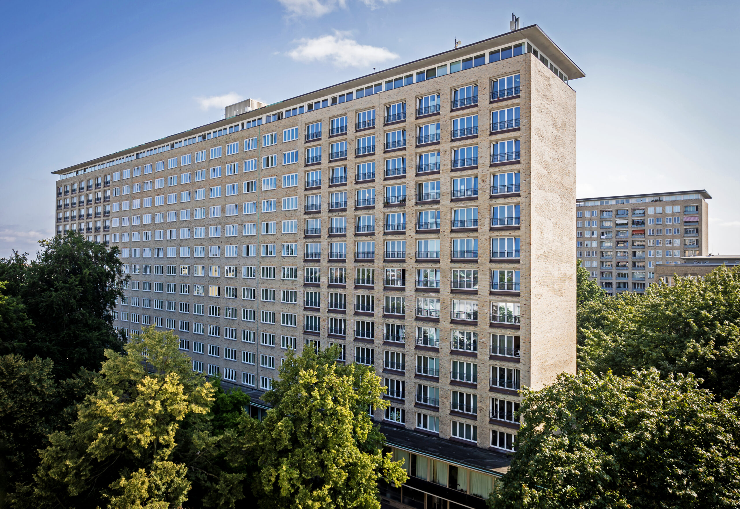 Die Grindelhochhäuser im Hamburger Bezirk Eimsbüttel sind die ersten Wohnhochhäuser in Deutschland nach 1945 und bieten sehr moderne Wohnungen, welche aufgrund ihrer Ausrichtung und ihrer Fenster hell und lichtdurchflutet sind. Heute steht das Ensemble aus zwölf Hochhäusern und einer Parkanlage unter Denkmalschutz.